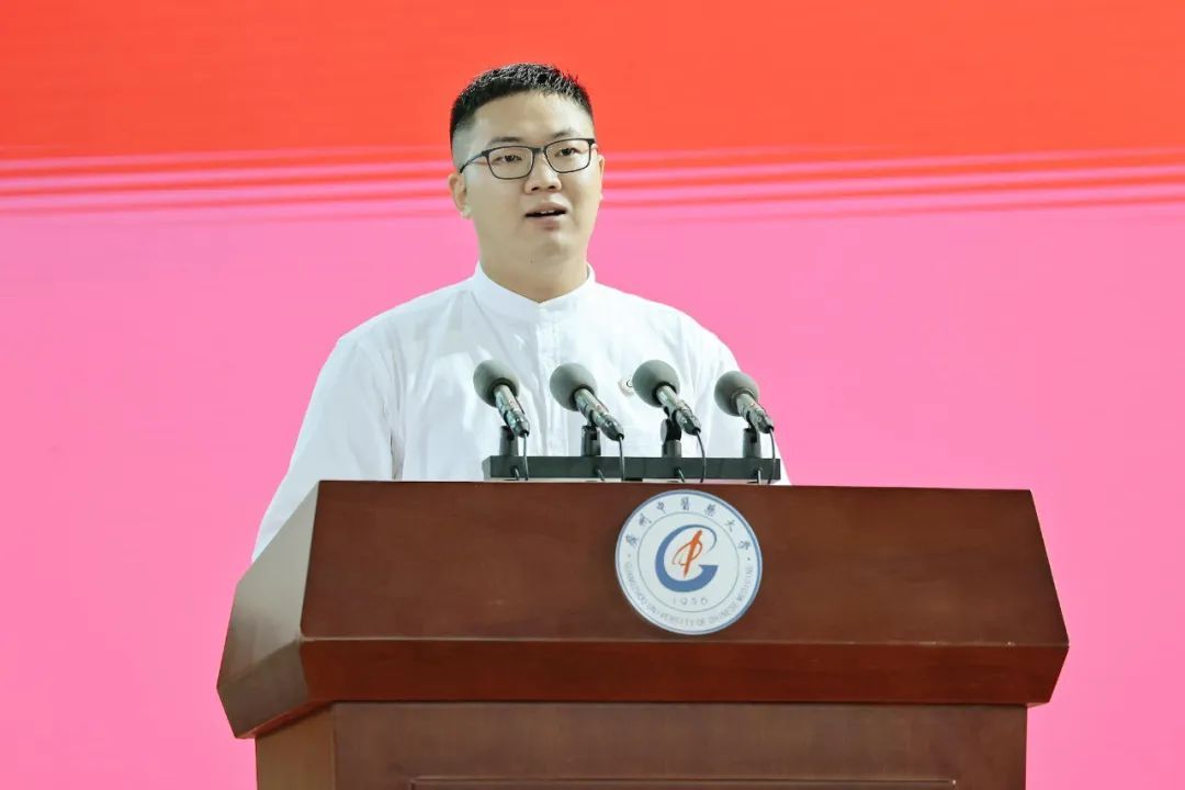 典礼上,学校为2023级研究生新生创新培养专项奖励资助获得者进行表彰,校长王伟向获奖代表颁发证书。校长王伟作了题为《把握阴阳之道,笃志博学,开启人生新篇章》的开学致辞,勉励同学们将青春奋斗汇入新时代,融入中国梦,融入中医药传承创新发展中,努力为中医药事业添砖加瓦。博士生导师邱士军教授作为教师代表发言,他寄语同学们要敢于探索人生的多彩之光,用信念明灯探寻光的方向,用扎实本领助燃激情,以十足的真诚追随光的脚步,拓宽视野在广阔天地竞逐光的绚烂,以饱满热情的姿态迎接新挑战,开启精彩人生。2017级中医学八年制张开源(中医专硕)代表在校学生发言,与新生分享了关于大学期间如何成为时间的主人、找到适合自己的最优解、成就自我三个问题的思考与心得。2023级博士研究生张璐代表研究生新生发言,立志在“胸怀祖国、服务人民”的使命担当中去追逐实现梦想,做一名人民的好医生、中医药的好传人、新时代的好青年、广中医的好儿女。