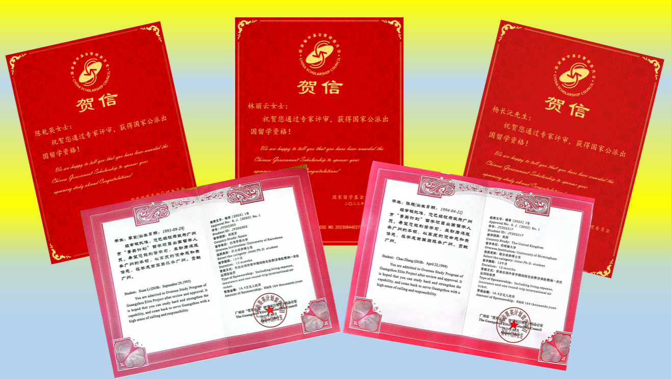 近日,根据国家留学基金委公布的2023年国家建设高水平大学公派研究生项目录取结果,我校林丽云等3名硕士研究生将以攻读博士学位形式,分赴意大利、德国和荷兰留学。根据广州市“菁英计划”留学项目领导小组办公室公布的2023年广州市“菁英计划”留学项目公派出国留学人员名单录取结果,我校李玄、张超等博士研究生获得资助,分赴西班牙、英国留学。