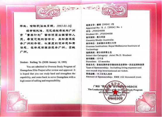 新学期新气象!近日,我校楚惠等4名研究生获2024年广州市“菁英计划”留学项目资助,录取人数创我校历年新高。继今年6月我校2名研究生获2024年国家建设高水平大学公派研究生项目资助后,再创佳绩,为新学期增添新色彩、注入新动能,再次献礼我校百年校庆。