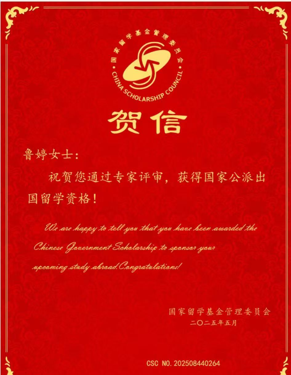近日,国家留学基金管理委员会公布“2025年国家建设高水平大学公派研究生项目”录取结果,我校李远超、吕宗泽等7名研究生成功获得国家留学基金委公派研究生项目资助,将分赴美国、德国、意大利、澳大利亚等国家的世界一流学府及一流科研机构,开启留学之旅。此次学校国家公派留学研究生获资助人数较近年显著增长(2023年获资助3人,2024年获资助2人),录取率达100%。近年来,我校研究生陆续公派分赴美国斯坦福大学、哈佛大学、耶鲁大学等世界一流知名高校留学,为学校新百年发展开新局、开好局注入新动能。