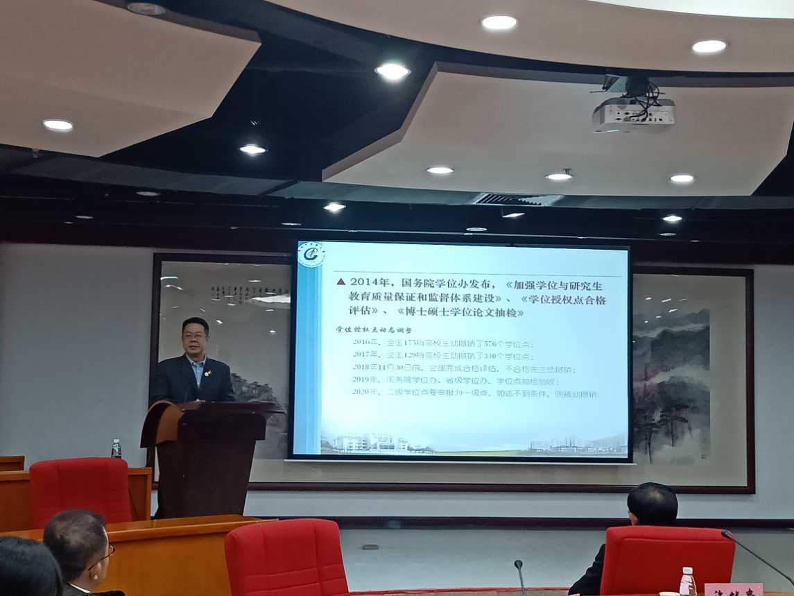 研究生院党委书记郝宏伟宣读学校关于2018年研究生创新计划项目立项资助文件、2018年优秀研究生学术创新成果奖励表彰文件。