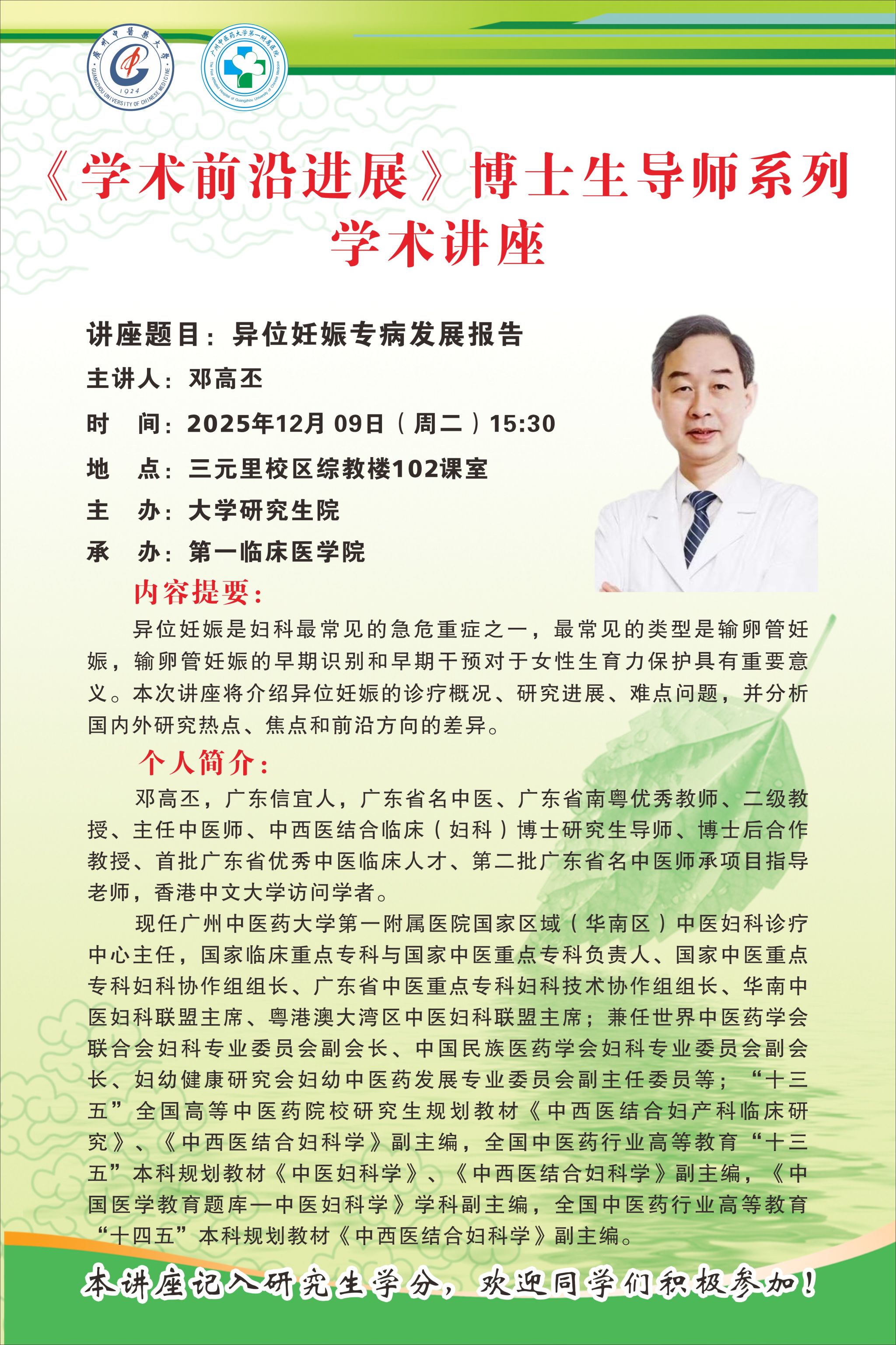 上一条:【博导讲座】从中医肿瘤发展史看中医药对人类健康的贡献 下一条:关于2026届毕业研究生成绩单自助办理的通知