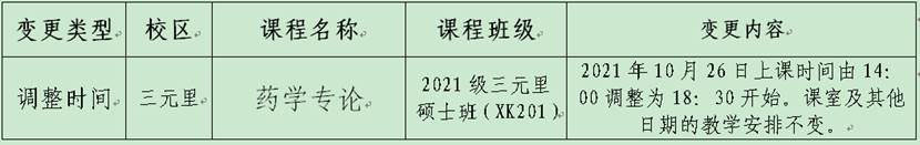 因课程老师临时会议影响,《药学专论》课程教务调整信息通知如下,请按调整后安排上课。