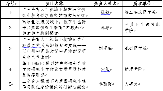 根据《广东省教育厅关于开展2023年广东省研究生教育创新计划项目申报认定工作的通知》、《关于开展2023年广东省研究生教育创新计划项目申报认定工作的通知》等精神,经个人申报、院所审核、学校研究生院组织专家进行遴选,拟推荐2个项目申报认定“广东省研究生学术论坛”;拟推荐2个项目申报认定“广东省研究生暑期学校”;拟推荐2门课程申报认定“广东省研究生示范课程建设项目”;拟推荐5个项目申报认定“广东省学位与研究生教育改革研究项目”、候补推荐5项;拟推荐3个项目申报认定“广东省专业学位研究生教学案例库建设项目”、候补推荐1项。具体名单如下,现予公示。