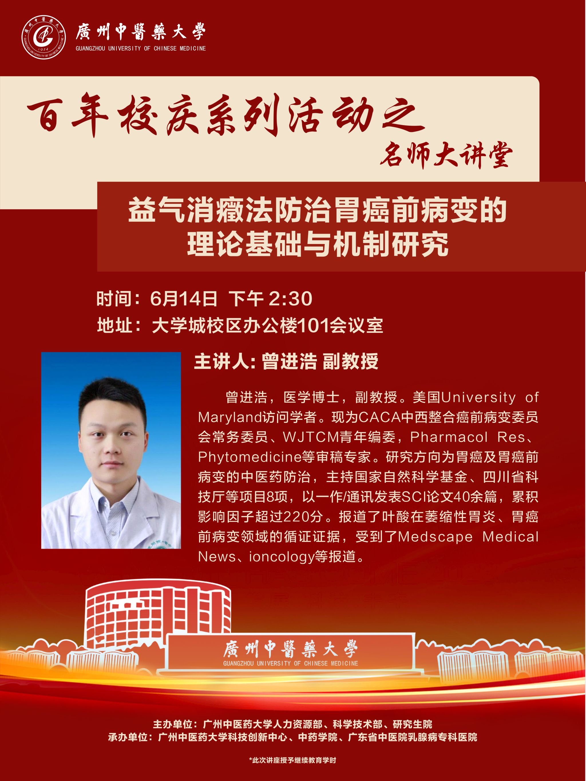 下一条:学术讲座:证候类新药临床研究思路及方法 主讲人:唐健元...