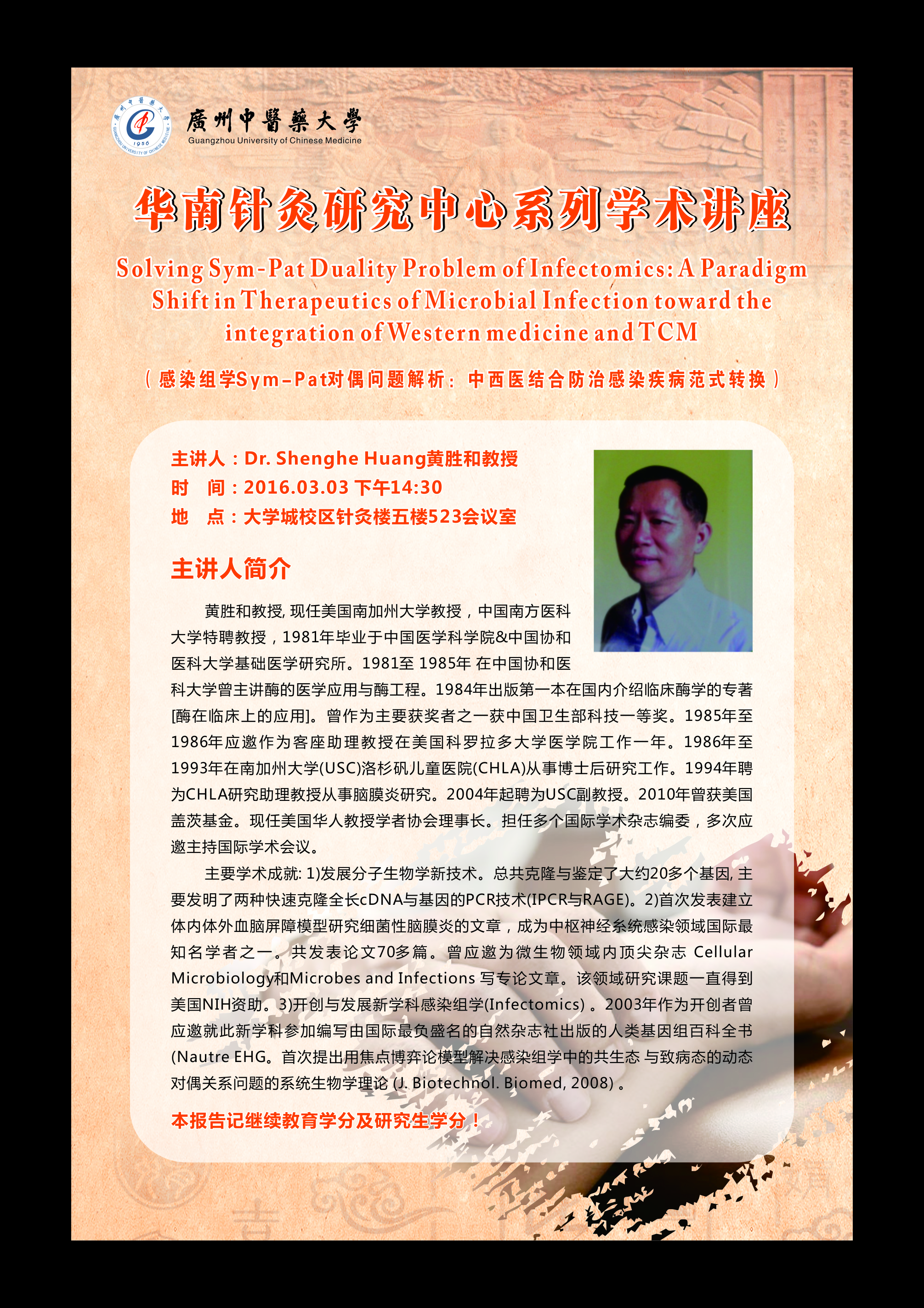 上一条:学术讲座:中医基础理论重点学科/基础医学院学术专题讲座 下一条: 转发《2015年“传承与创新—国际视野下的中医药学”全国...