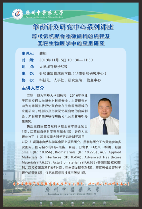 上一条:名医荟萃:中医经典体系辨治肿瘤“围三留一,开门逐寇” 下一条:学术讲座:心血管介入材料的改性与生物安全性评价