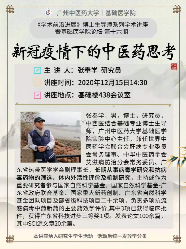 上一条:博导讲座:从“四个自信”谈谈“外国的月亮”(主讲人:... 下一条:博导讲座:中药复方配伍规律研究及高水平论文发表(主讲...