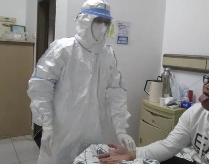 “这和平时诊治病人的样子一模一样,不同的是我们的外面多了一层防护服,但是防护服却掩盖不住老师对诊治病人的热心与专心。”看到邹教授如平时一般带着自己查房,周袁申感慨万千,仿佛回到了学生时代。“我自己都感觉到汗在手臂上打转,而转身看到老师的两个护目镜早已布满了雾水,令我满是敬佩。”